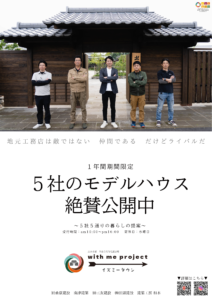 皆様こんにちわ。弊社 WaDo House/桑原建築 も参加しております。【with me project】による、5社合同住宅展示場プロジェクト。イズミータウン五万石町住宅展示場が1月11日にオープンいたしました。