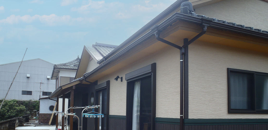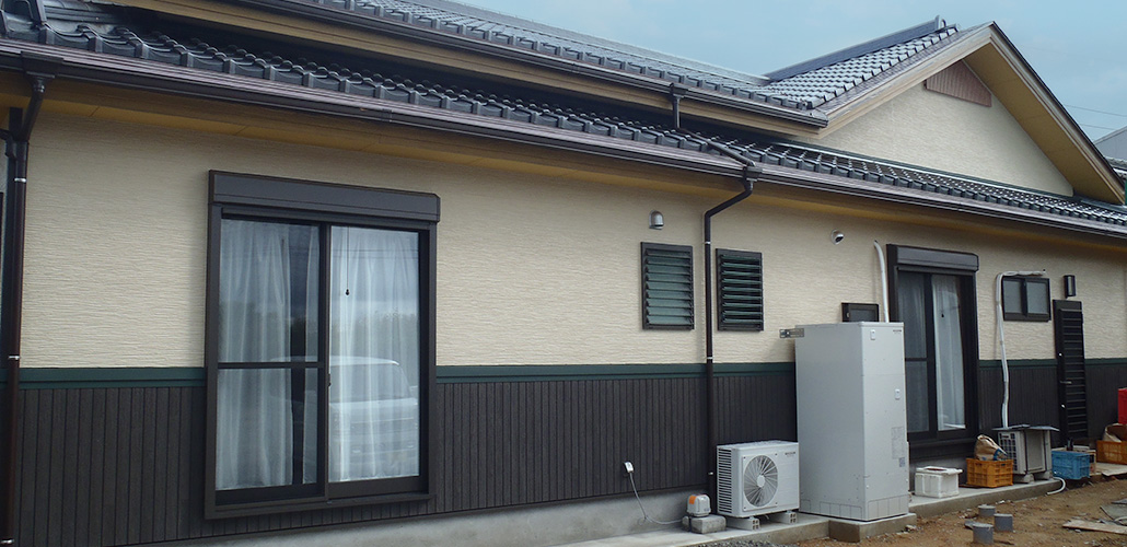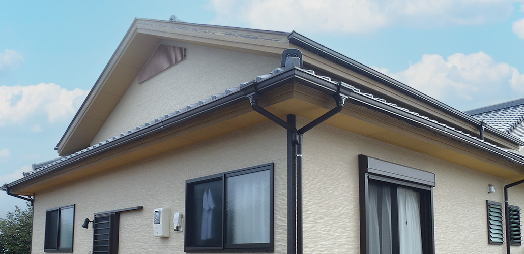 お施主様の要望により屋根に瓦と銅板を使用した二段屋根とし和風に仕上げました。